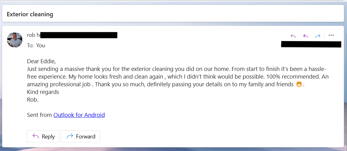 If you have any other outdoor cleaning needs, then we also carry out a range of other commercial & residential exterior cleaning services such as gutter cleaning, fascia cleaning & fence cleaning but feel free to get in contact with us if you have any other requirements not listed as I'm sure we would have no problems covering it as we will always endeavour meet your needs to the highest quality.